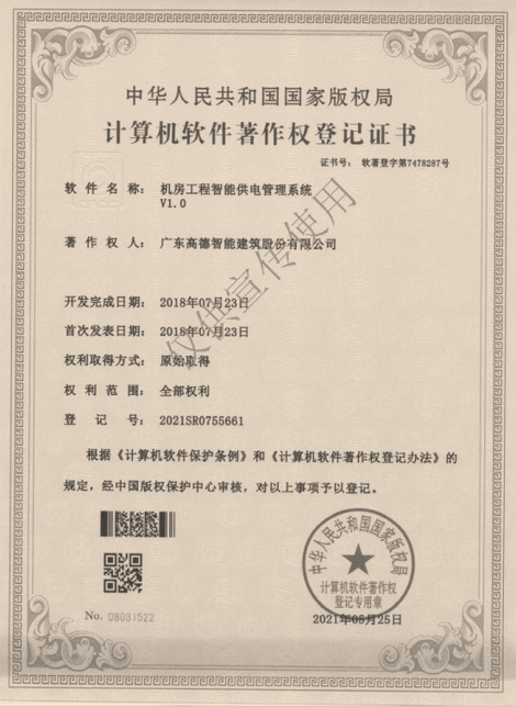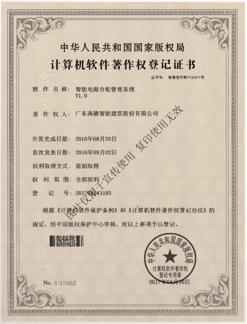 多功能智能控制配電柜證書